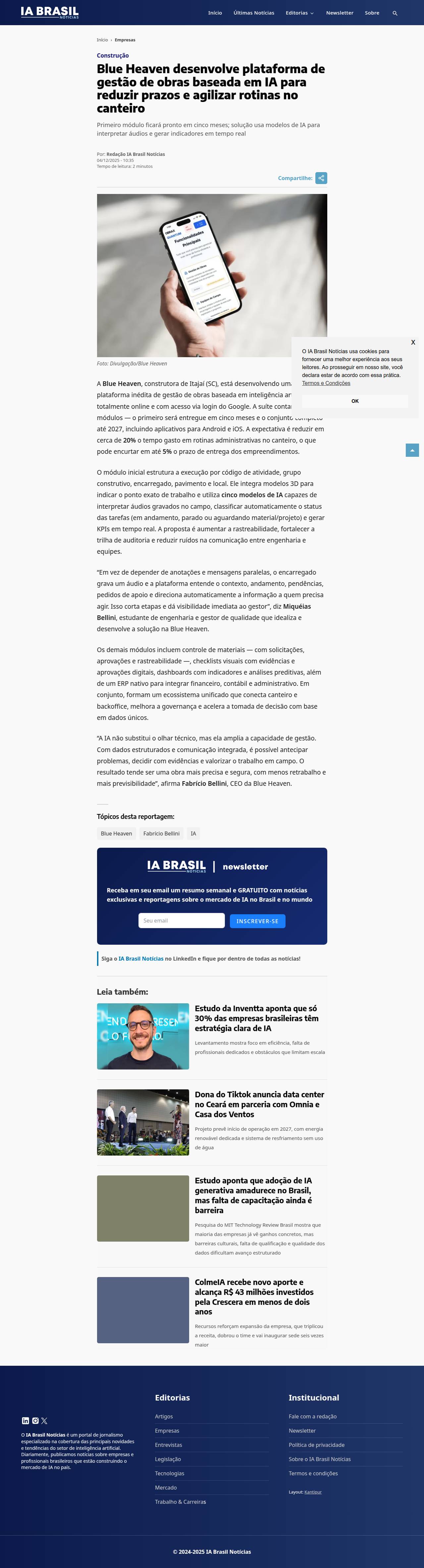 Blue Heaven desenvolve plataforma de gestão de obras baseada em IA para reduzir prazos e agilizar rotinas no canteiro - IA Brasil Notícias - Tudo sobr
