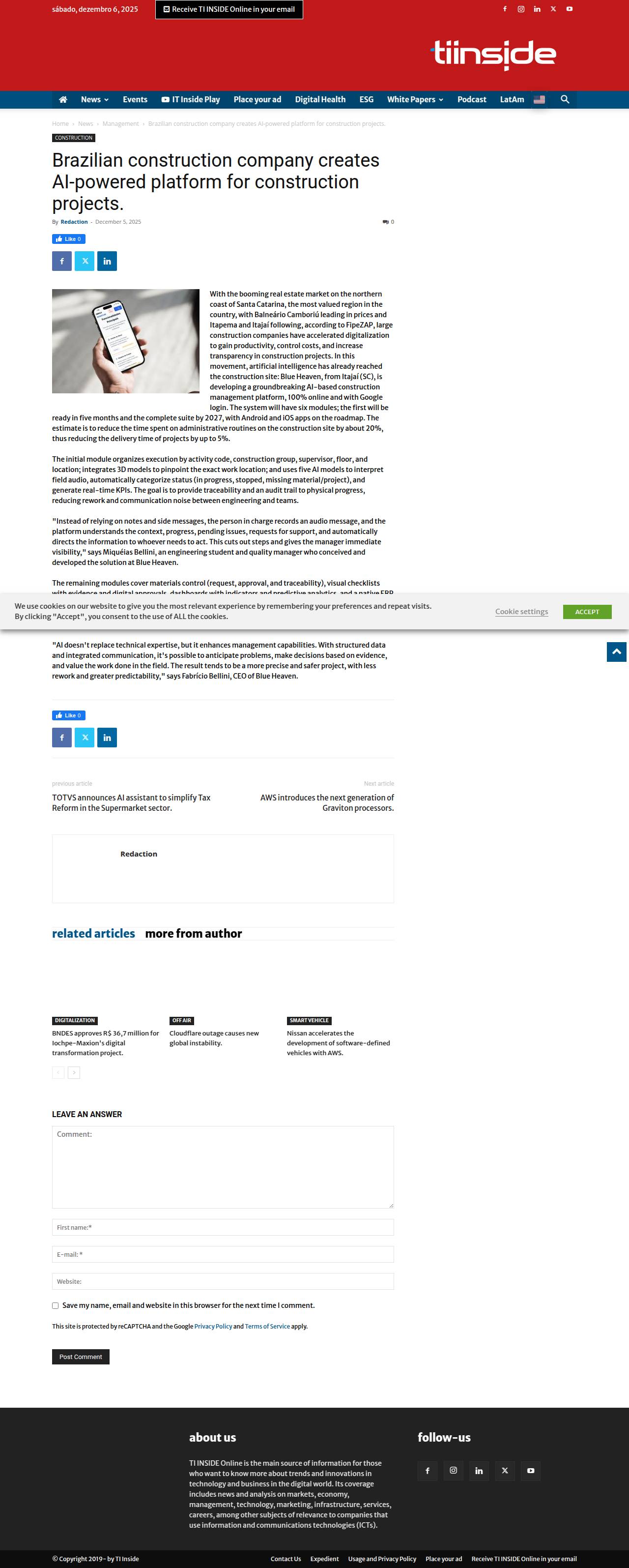 Construtora brasileira cria plataforma com IA para obras