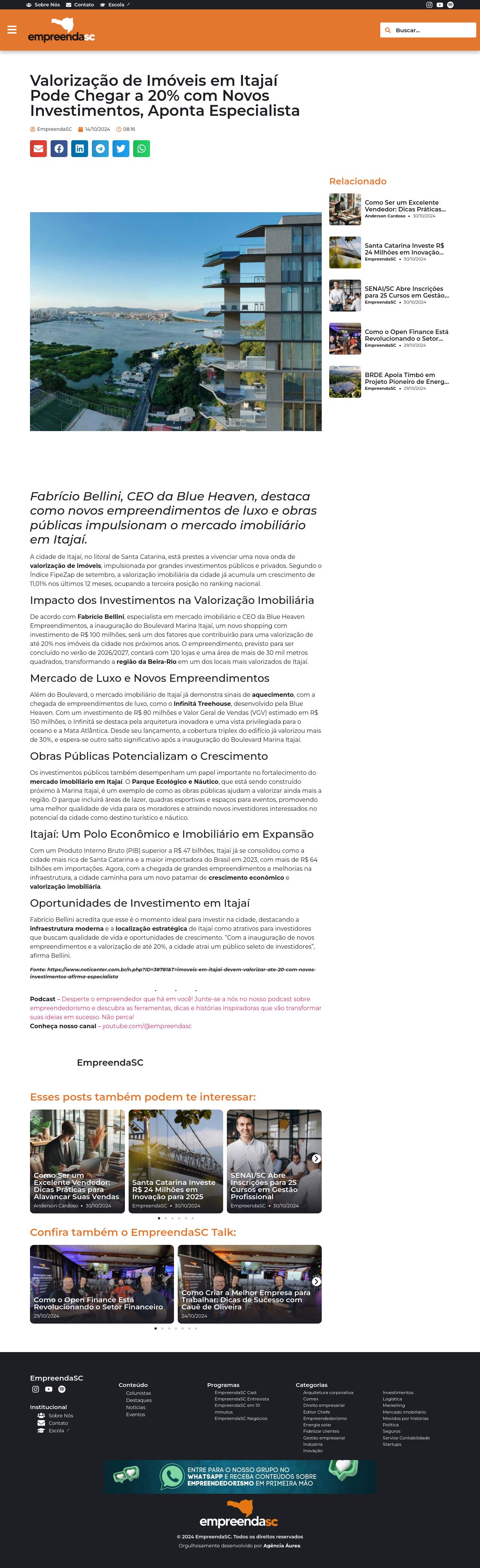 Valorização de Imóveis em Itajaí Pode Chegar a 20% com Novos Investimentos, Aponta Especialista